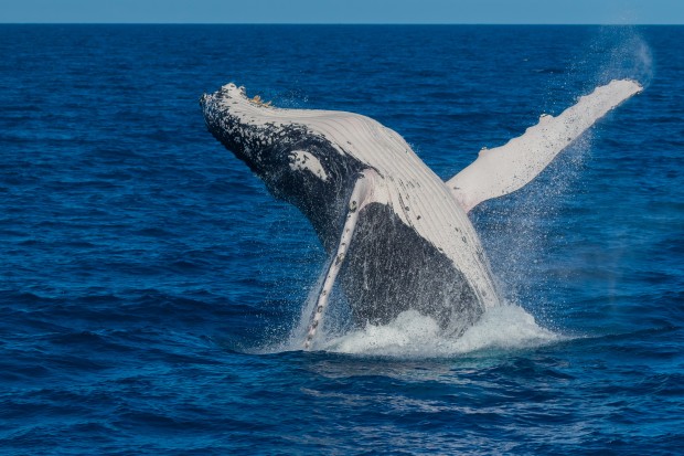 In Hervey Bay Humpback Whales enjoy a short break from their 10,000km swim. This large adult was feeling good and breached many times for us