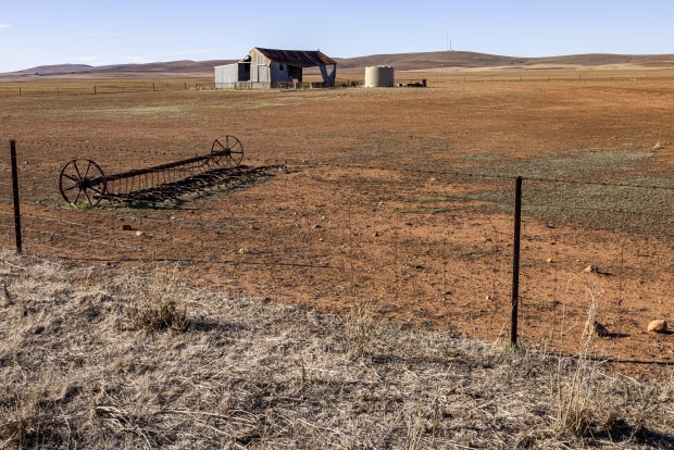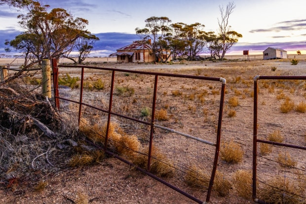 Dreams destroyed by repeated droughts. Four seperate homesteads but only one still trying to survive.