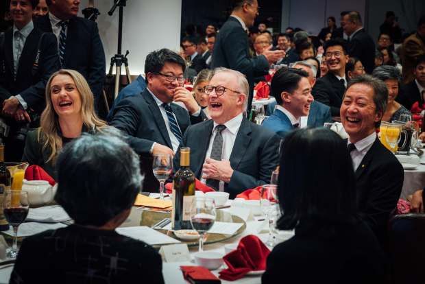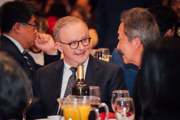 "A Night of Shared Laughter" captures a rare moment of joy where Australia’s Prime Minister joins the Chinese-Australian community at a gala dinner. The scene reflects the spirit of multicultural harmony, celebrating the warmth of cultural exchange between China and Australia. The laughter shared across the table embodies unity, respect, and a sense of togetherness — a night where diversity becomes a source of joy and connection.