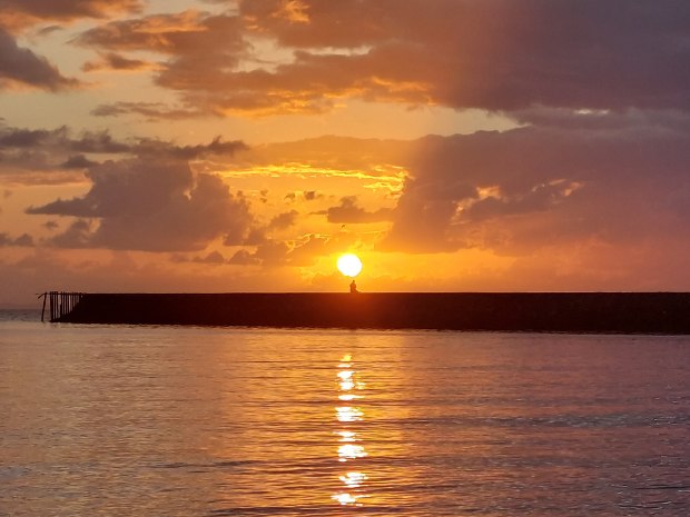 This photograph was taken at sunrise, focusing on a lone silhouette greeting the day from a stone jetty. The immense size of the sun dwarfs the figure, illustrating the immense power of nature and the smallness of our own existence. At the same time, the solitary act of a person embracing this moment symbolises a brave and willing acceptance of life's challenges. It's a reminder to face each new day with courage.