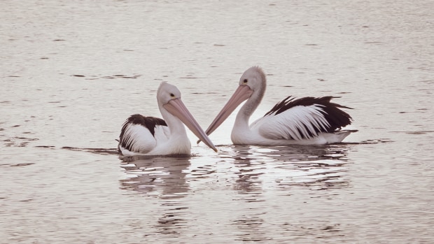 I was watching the pelicans as they preened their feathers after a swim, at a local beach. An uncontrolled dog, the owner calling ineffectually "Bad dog, come here", jumped into the sea and chased the swans over a very great distance. Both swans were alarmed and took off in different directions. Finally they were reunited out at sea. Calm was restored.