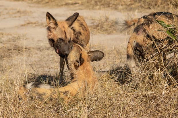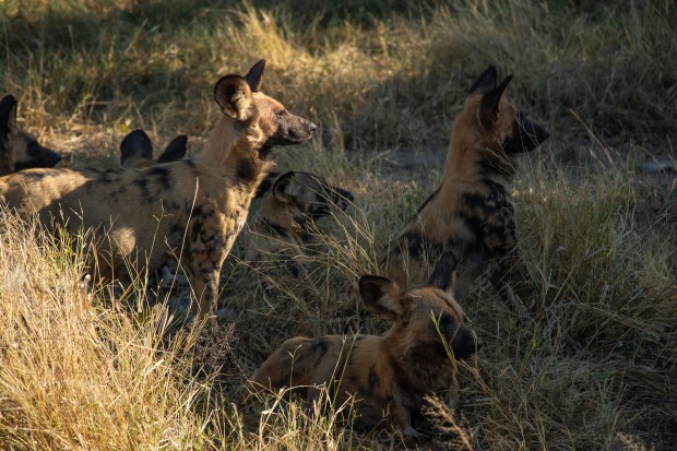 Botswana has large packs of African wild dogs. They are very social, while remaining alert and get into formation before hunting - Mababe Private Reserve, Botswana