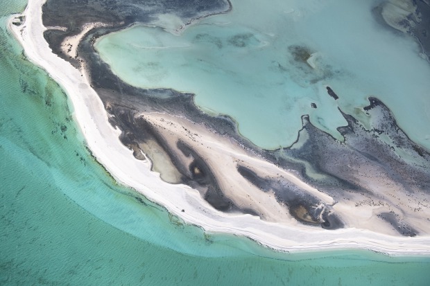 The rich turquoise tides kiss the ivory shores of Shark Bay