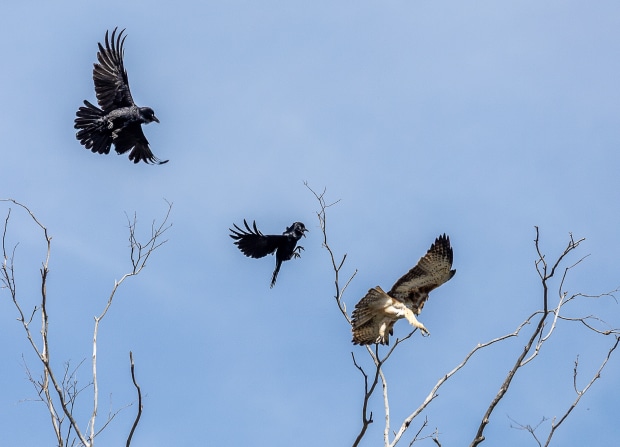 Stopped at the beginning of Telowie Gorge walk in South Australia when noticed a Whistling Kite in the sky. It then landed in the branches only to be constantly under attack by the crows. They were relentless!