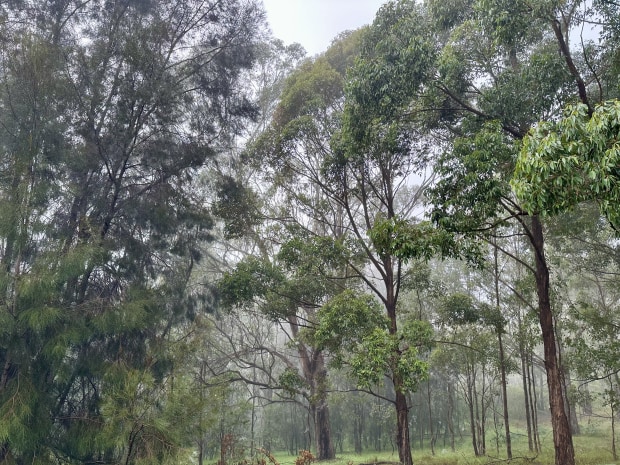Mystical yet authentic — a Sydney winter morning where bushland breathes again. Mist, dew, and light weave through eucalypts as the forest awakens. Birds stir among branches, and the day unfolds in quiet renewal.
