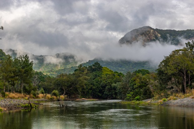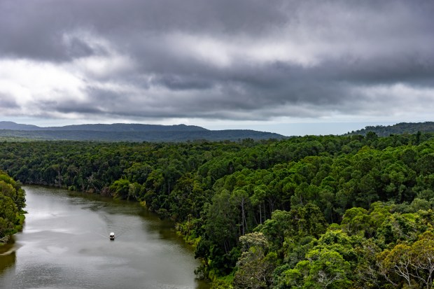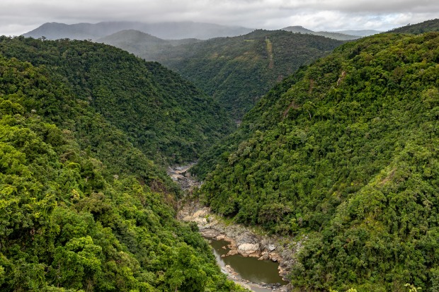 The Barron River, far North Queensland, from the Tablelands near Kuranda, looking down the Gorge, across Kamerunga Island towards Glacier Rock, and then out to the Coral Sea.