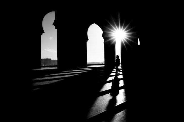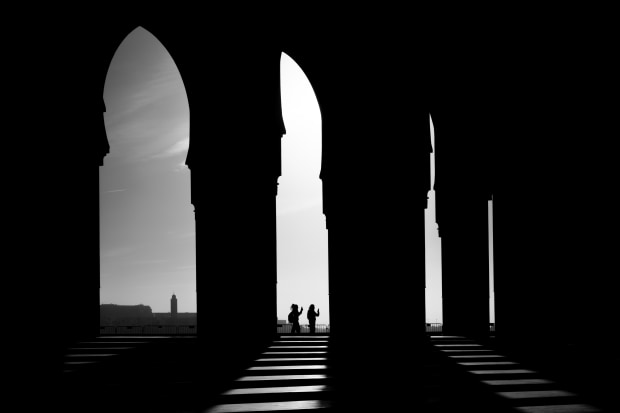 As I wandered through the vast grounds of the Hassan II Mosque, I felt dwarfed by the towering arches that rose like gateways to the sky. I wanted to capture this experience by taking photographs of the silhouettes of people dwarfed by the grand arches that frame them. In stark black and white, light carves sharp patterns across the ground while shadows stretch endlessly, merging human presence with monumental form. For me, these images celebrate scale, geometry, and the quiet poetry of fleeting moments beneath the enduring structures.