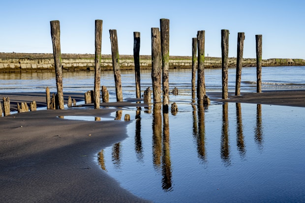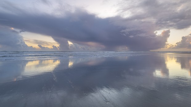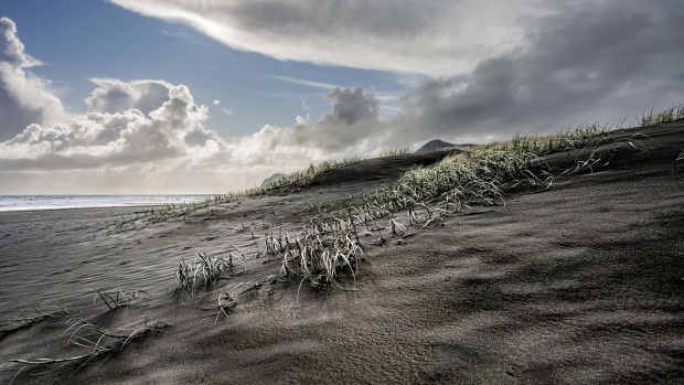Being accustomed to the white sanded beaches of Australia I was amazed when visiting New Zealand by their black sand. I particularly liked how highly reflective it was when wet.