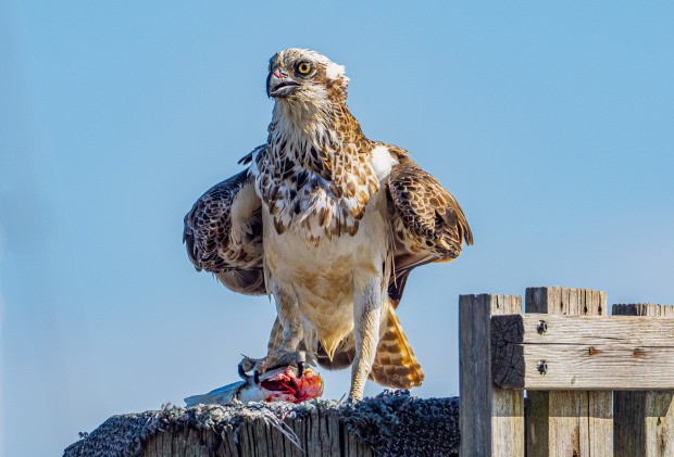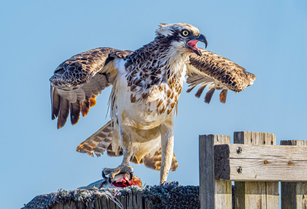 A female osprey making a lot of noise while letting the other osprey that were in the area at the time know very loudly that this was her fish, before taking flight. At this time i observed four osprey in the area, three of them were local to this specific area. Captured in iluka, NSW.