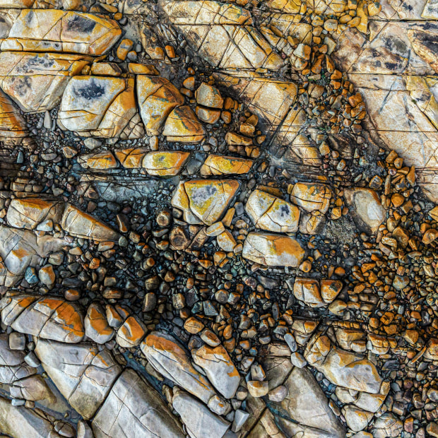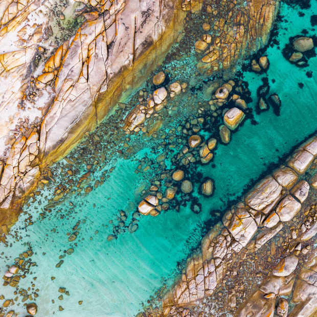 Aerial images of coastal scenes showing sea, sand, rocks and wildlife