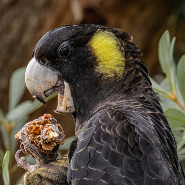 Yellow-tailed Black Cockatoo feeding Portraits