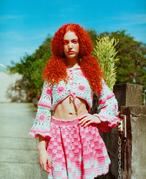 Bella Cameron, also known as Colour Puff Girl, discovered her love for crochet in 2021 and she hasn’t looked back since. Within months of picking up a hook, she began creating unapologetically bold pieces that celebrate individuality, colour and self-expression. From thigh high boots covered in hundreds of hand sewn puff flowers to avant garde runway looks, Bella’s work radiates joy and defiance. By 2023 her fearless approach to design earned her a finalist spot in the Australian Wearable Arts Fashion Festival, where she went on to win the Supreme Award, an honour she reclaimed in 2024. Her high fashion crochet has since been featured in Frankie Magazine and showcased on national television and radio. I had the privilege of photographing Bella’s creations on model Jose Burke, capturing the way her work embodies the spirit of the queer community, vibrant, fluid and beautifully diverse. Through her art, Bella is redefining what crochet can be, not just a craft but a form of liberation, celebration and self-discovery. The photographs were captured on 120mm film, highlighting the texture and intimacy of Bella’s world through a timeless medium.