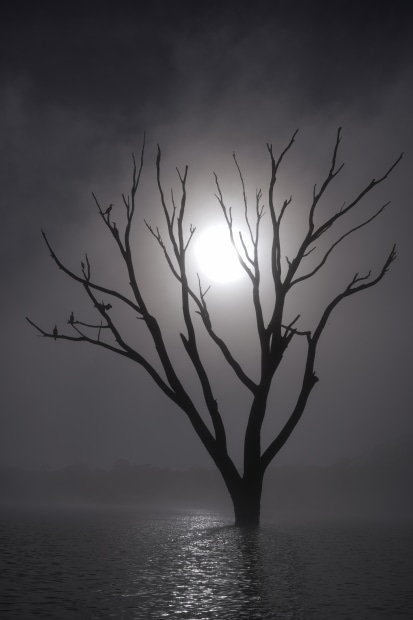 Robert Lee, Dead Tree In The Lake, A Living Space For Others. (BLACK & WHITE 2025)