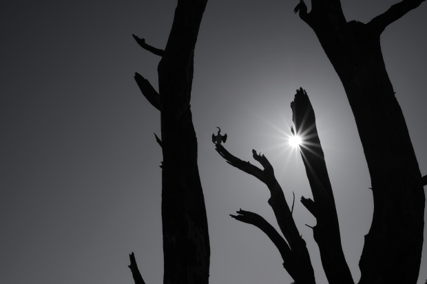 The water level in the lake had reduce tremendously, which resurface most part of the dead trees. More birds are gathering on the new branches now.