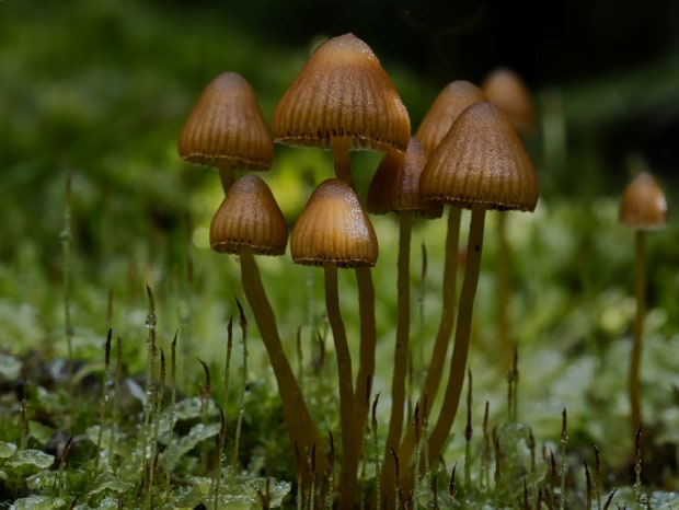 Winter's bounty, damp dark and mysterious give live to the endless variety of very small fungi.
