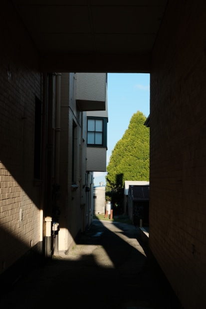 Dusk captures the quiet alleys of Katoomba as daylight fades. The series explores the play of shadow and light, the solitude of narrow urban spaces, and the moment when the town transitions into night, marked by a single streetlamp and the rising moon.