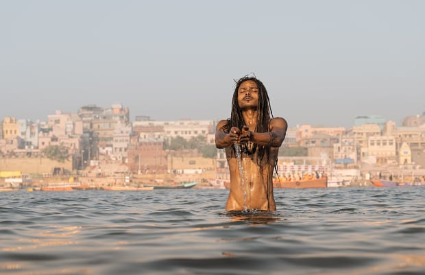 In the cold early-morning in Varanasi, I huddled in a boat to row across the Ganga with my guide and a young NagaBaba.