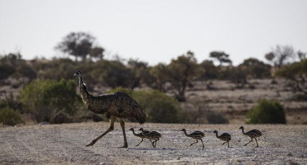 On a recent outback NSW trip, just outside of Tibooburra, we cam e across an Emu dad and his five little striped chicks. He was very comfortable with us watching him and his chicks as they foraged for food, the chicks running after dad. This photo was captured as they were crossing the road and dad was strolling to the other side of the road with the chicks following at a slightly quicker pace. I feel so privileged to have been able to spend this time with this emu and his chicks. It is not a sight a lot of travellers get to see.