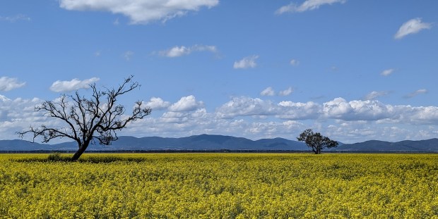 Exploring the canola fields, I finally found some with Trees standing alone. Took me awhile to find the vantage point