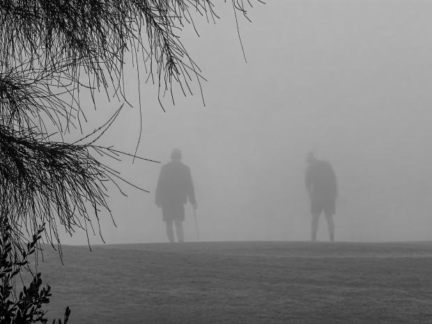 Keen golfers in early morning fog