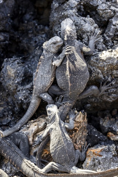 The Galápagos iguanas come in all shapes and shades – from salt-spitting marine iguanas sunbathing on lava rocks to golden land iguanas lounging like royalty among the cacti.