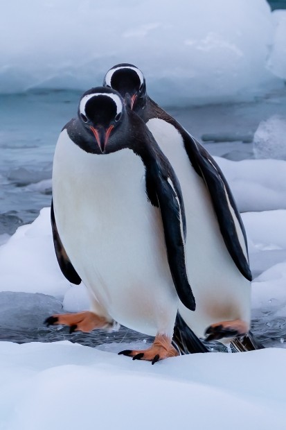 Gentoo Penguins strutting their stuff on the ice in Antarctica
