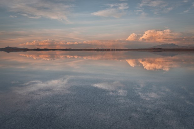 The Uyuni salt flats in Bolivia allow stunning reflections on the glass-like surface of the water.
