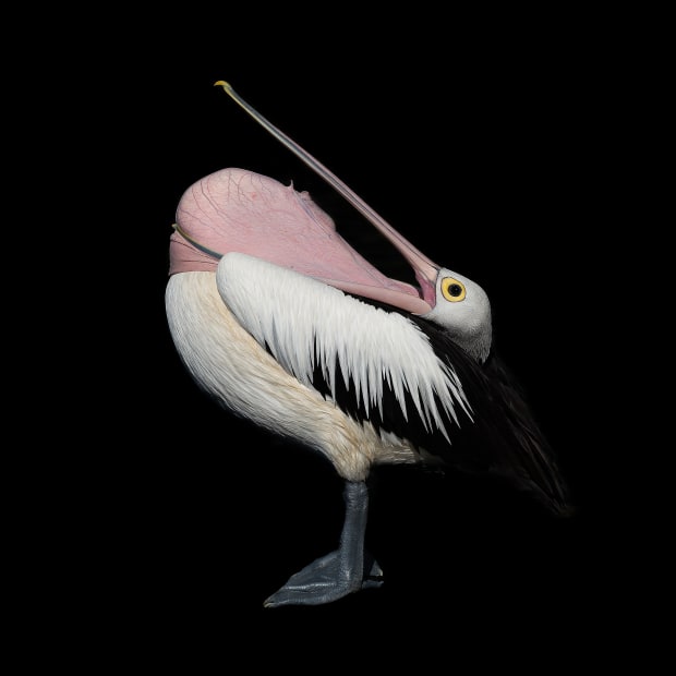 Occasionally pelicans invert their throat and stretch it over their neck and chest in order to stretch and rearrange mouth and throat tissues in a process known as glottis exposure. It is quite something to see them stretch their long neck and beak vertically into the air and then fold the neck back down again with the mouth and throat tissues stretched out over the neck!