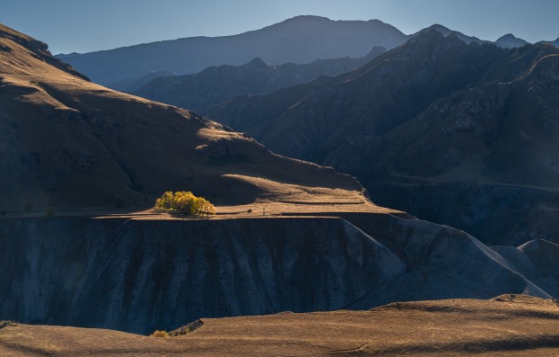 Autumn colours glow in Skippers Canyon - remote, historic gold mining country in New Zealand's South Island