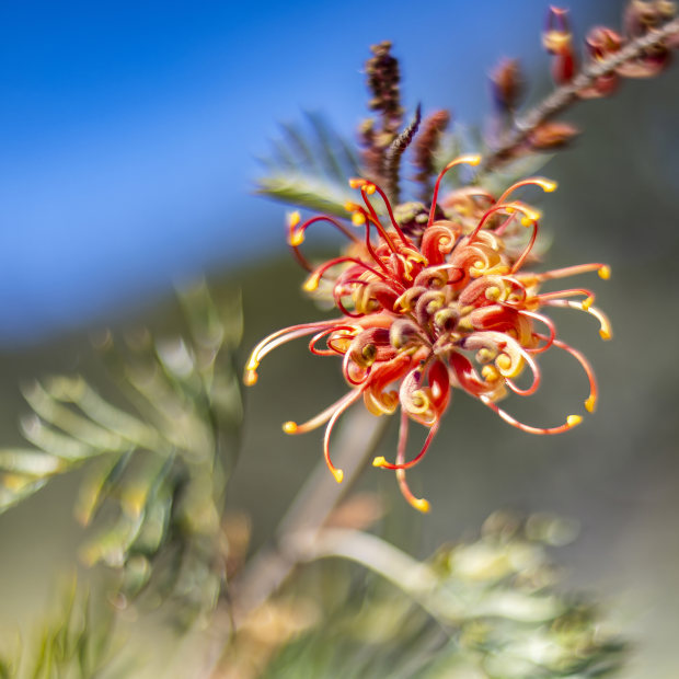 Grevilleas are Aussie natives that show off with wild, spidery flowers in bright reds, oranges, and pinks – like nature’s own fireworks, and the birds can’t get enough of them.