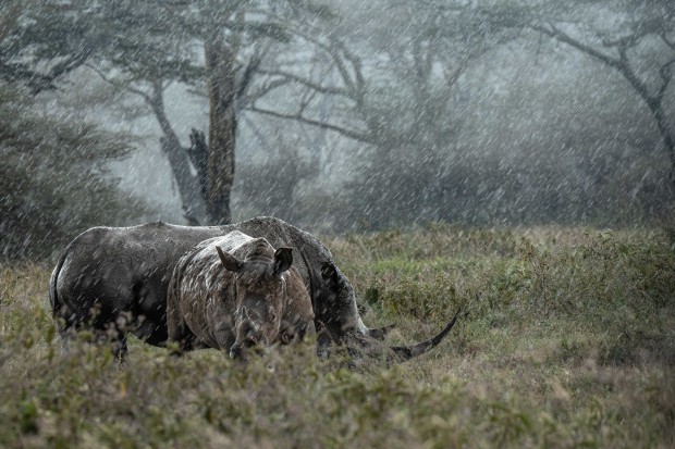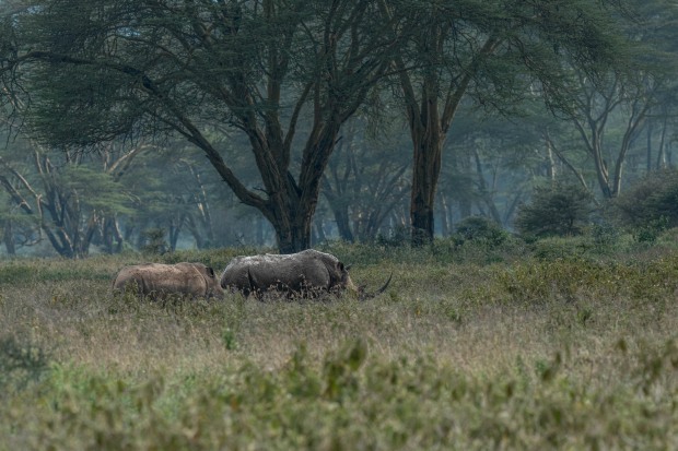 In the heart of Lake Nakuru's verdant landscape, a rhino pair finds solace in the simplest of rituals. As rain gently falls over the ancient forest, these magnificent creatures share an intimate moment—grazing side by side, oblivious to the downpour. This sequence captures the quiet tenderness between companions, where survival and connection intertwine. The lush Kenyan backdrop serves as a reminder of what we stand to lose, while the pair's peaceful coexistence speaks to resilience and hope. In their unhurried harmony, we witness not just endangered wildlife, but a love letter to persistence in an increasingly fragile world.