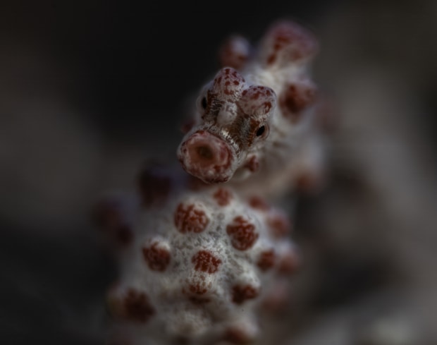 Hippo Campus (Pygmy Seahorse), about the size of a grain of rice is difficult to shoot at the best of times. A front on shot takes patience.