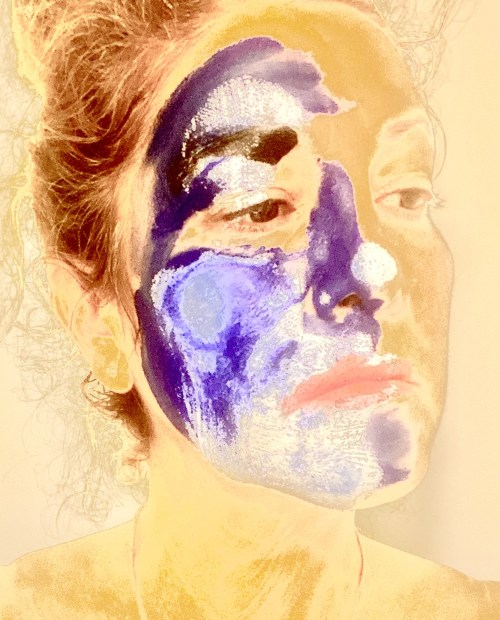 "I, The Clown" is a poignant exploration of identity and hidden emotions. The expressionistic styles hints at the unreadable face and the story it holds behind the paint. What does it mean to hide behind a facade? What emotions lie dormant beneath the surface? Considering the complexities of human emotion and the masks we wear.
