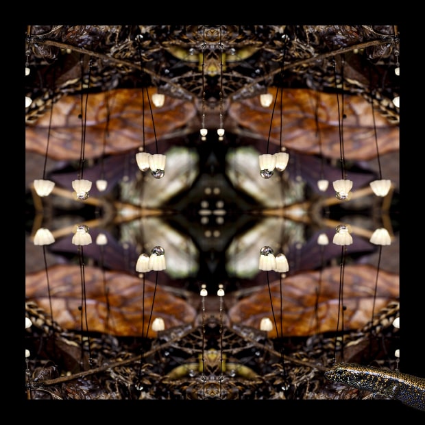 This reflective photographic artwork invites the viewer to glimpse the quiet, hidden world at our feet, where a Murray’s Skink seems poised to step into a magical realm of pin-sized mushrooms. Here, a luminous miniature landscape is alive with subtle beauty, quiet intelligence, and the intricate relationships that flourish there.