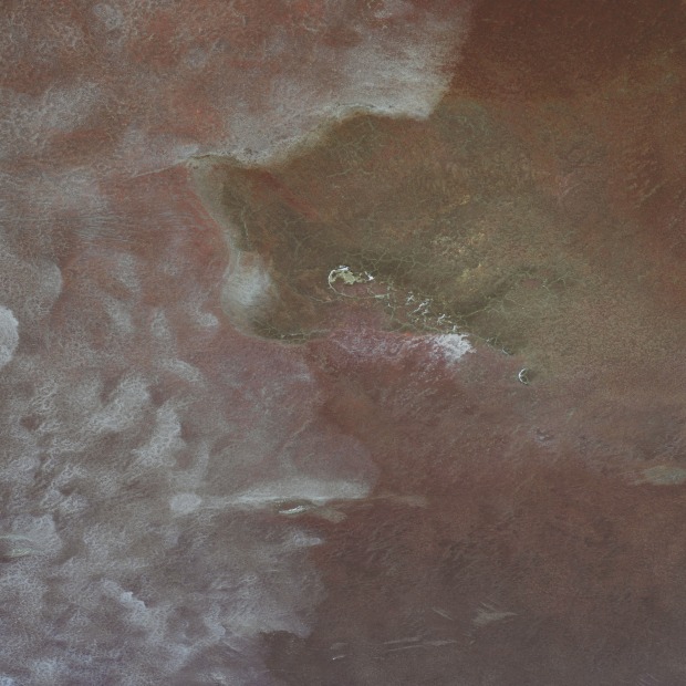 The thin layer of salty water over the mud flats of Kati Thanda-Lake Eyre shifts and moves constantly. Upon moving to a new location or drying up, salt patterns are left behind to mark where the water once was.