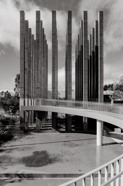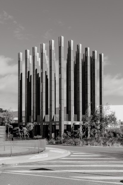 Less pavilion in Canberra is a contemplative public space without a firm use. Designed by Chile-based practice Pezo von Ellrichshausen, it is a series of concrete columns that omit water continuously to help the surrounding local indigenous plant species flourish.