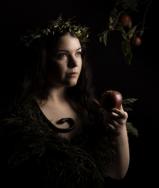 These portraits envisage historical and mythological women from history through a contemporary lens. They honour women form the past, drawing inspiration from figures who have been revered, coveted or misunderstood. The poses of the models convey their autonomy and their intent expressions invite a sense of connection with the viewer. Through these images, I sought to illuminate the timeless presence of women, who repeatedly reimagined, continue to shape our cultural imagination. Anne Boleyn, the second wife and Queen of Henry VIII, captured the King's attention with her wit, charm and refusal to be his mistress. She was later beheaded on charges of High Treason, a fate she faced with dignity and grace. Eve, the first woman of the Abrahamic religions, was tempted by a serpent into eating the fruit of the forbidden tree, an indiscretion which brought death into the world, and led to humanity's expulsion from Eden. High Queen of Britain, Guinevere was caught between her duty to her husband, the legendary King Arthur, and her love of his best knight, the peerless Sir Lancelot, a tragic tension which contributed to the fall of the Round Table. The first human woman of Greek mythology, the curious Pandora ignored divine instructions and opened a mysterious vessel now known as 'Pandora's Box', which unleashed all the evils of the world, but also contained 'Hope'.