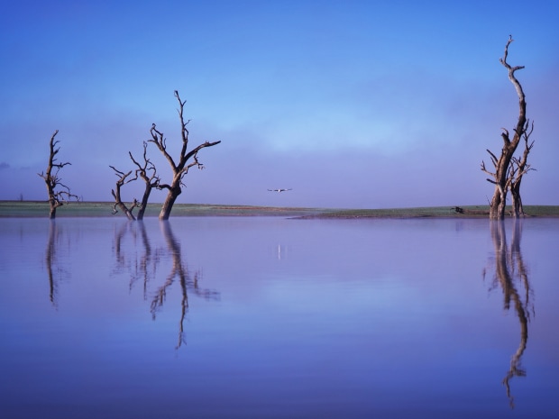 A Pelican charged through right in the middle of my composed scenery capture at Mansfield lake. Super glad to have it in the shot.