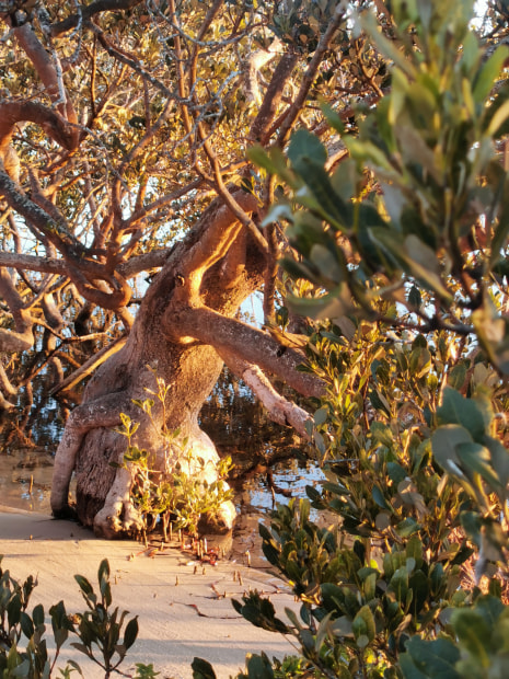These photographs capture the mangroves of Merimbula Lake at sunset, shifting between light and reflection, stillness and motion. Taken during my daily walk, they trace the quiet pulse of this fragile ecosystem, revealing its resilience and vulnerability as water, sky, and root merge in fleeting moments of balance and beauty.