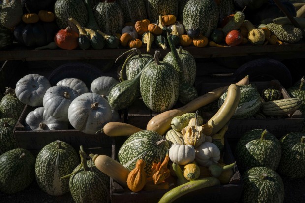 In the late afternoon light of an autumn day, the abundance of marrows takes on a bountiful majesty.