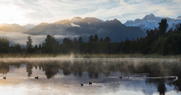 The photo was taken in October 2024, capturing the most serene and enchanting scenery I encountered on New Zealand’s South Island. That morning, I arrived alone at Lake Matheson, where a faint mist floated gently over the calm lake surface. After setting up my equipment and taking a few shots, I quietly waited for sunrise. As the dawn light gradually illuminated the sky, the glowing mist was occasionally pierced by the calls of wild birds. Pairs of wild birds leaped into the lake from all directions, swimming and singing freely in the water. Wanting to capture the beautiful scene from a broader perspective, I switched to a medium focal length lens and took this panoramic photo, which I am particularly fond of.