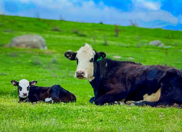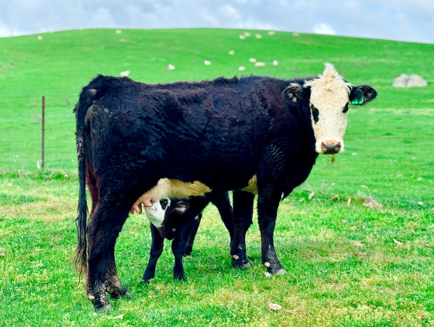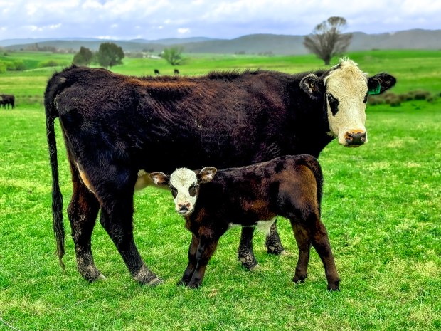Miley, raised as a poddy, had her first calf- she is such a good mum.