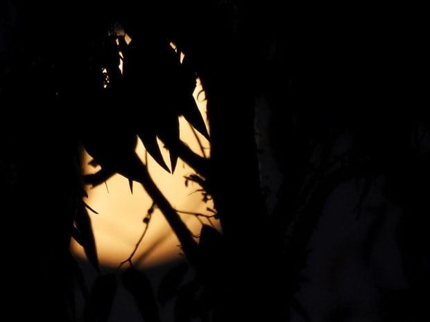 Manna gum leaves agains the golden autumn moon. Such a peaceful and radiant moonrise. (from series of hand held photographs)
