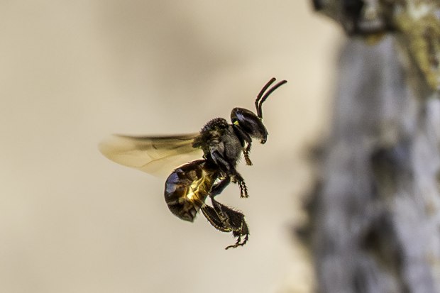 Tetragonula carbonara Bees flying to and away from the hive.
