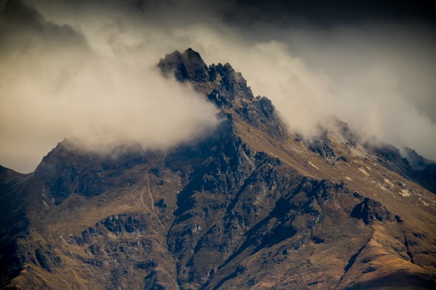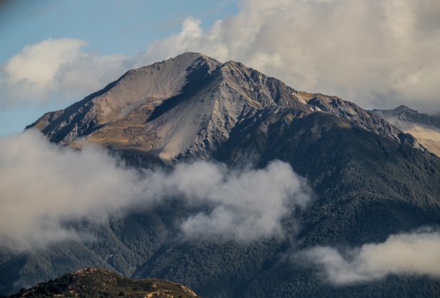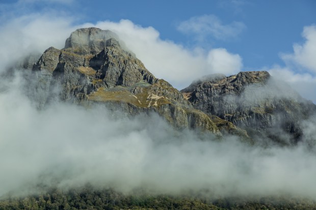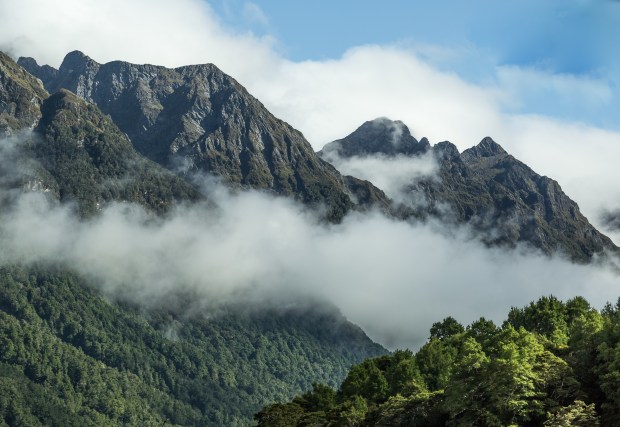 Cloud shrouded mountain peaks in south island of New Zealand.