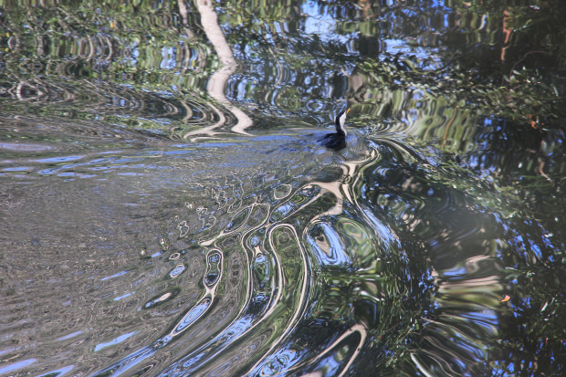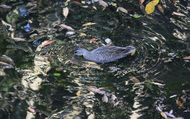 The patterns and colours of the Obi Obi Creek which runs through Maleny (Qld), are almost more interesting than the subjects. Vibrant water reflections move like mercury as the local resident platypus, ducks and cormorant glide by. The surrounding forest, blue skies and fallen leaves and flowers (due to the dry at the moment) are all reflected in the surface creating a fascinating, never the same every second, surface.