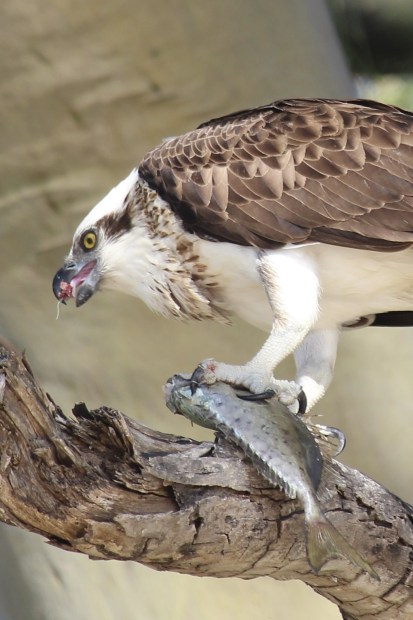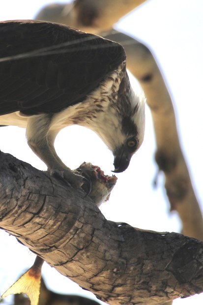 Osprey catching or flying with their fish are a favourite photographic challenge. This one just landed with its catch on a perfectly sunlit branch !