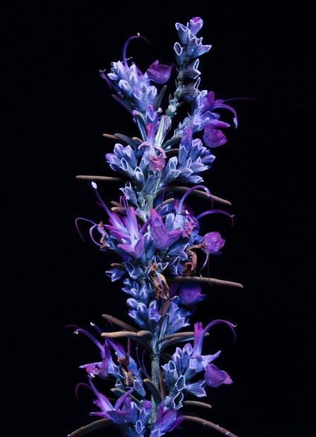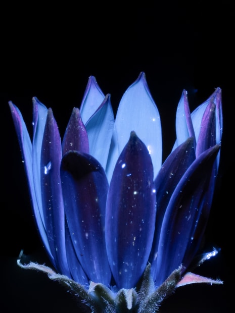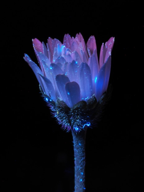 Flowers photographed under ultraviolet light using long exposure.