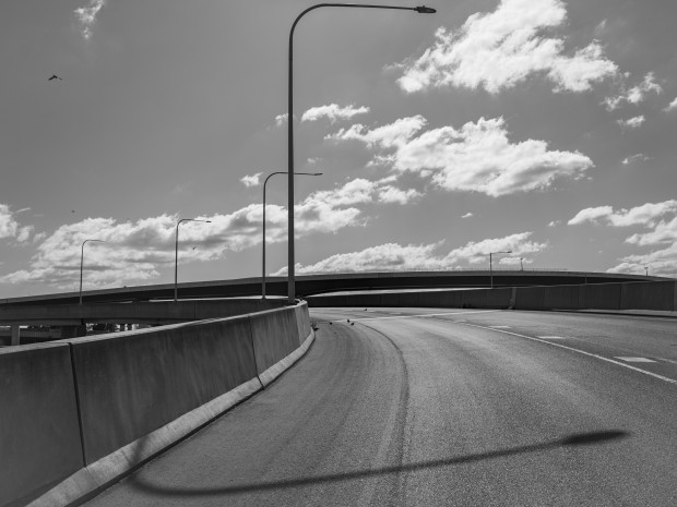 The normally busy, truck-filled roads that are intertwined around Melbourne's ports and docks area were quiet on this Sunday, allowing the industrial curves and lines to be more obvious.
