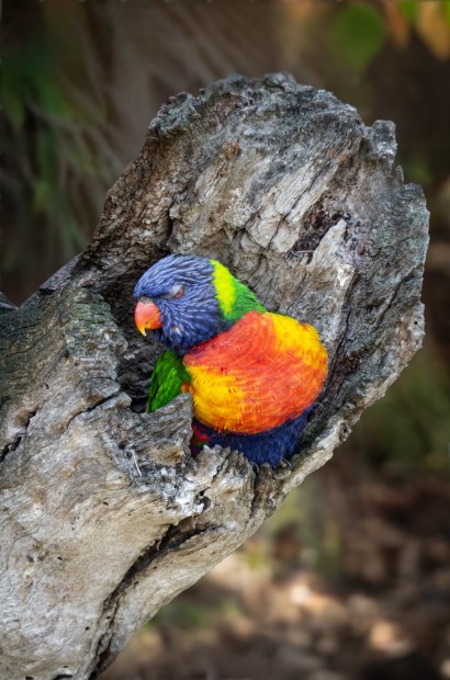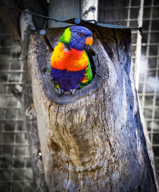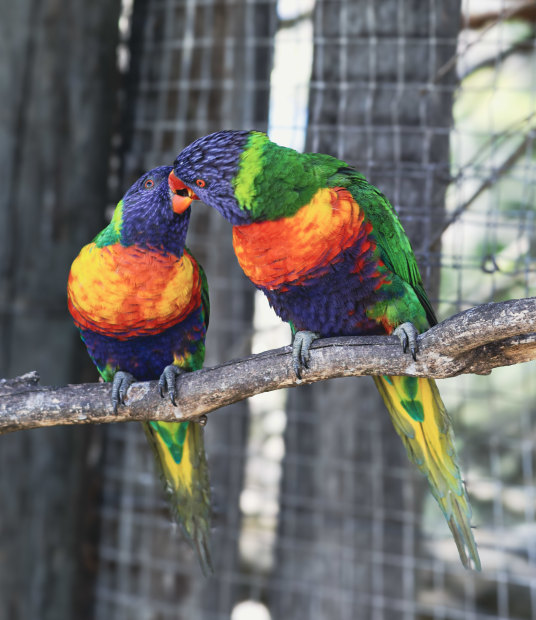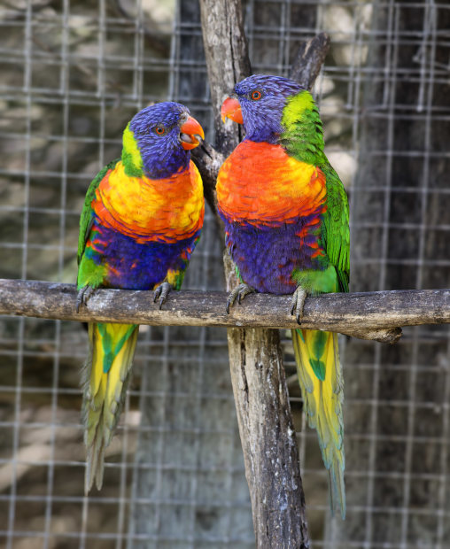 A flock of Rainbow Lorikeets at Urimbirra Wildlife Park in Victor Harbor